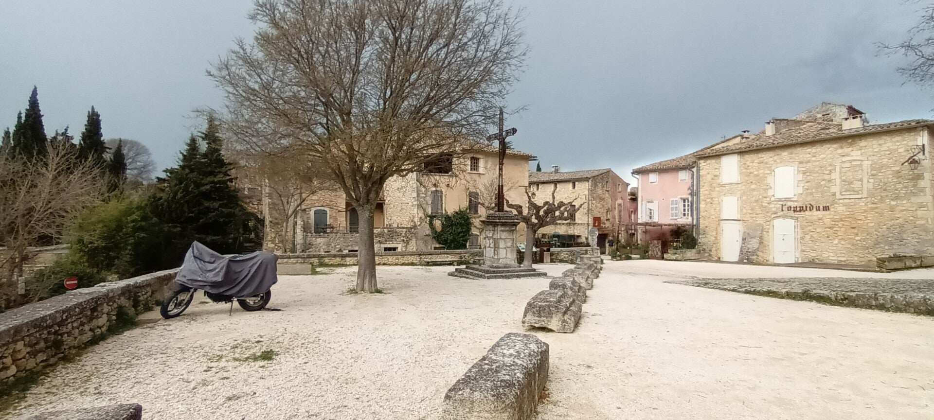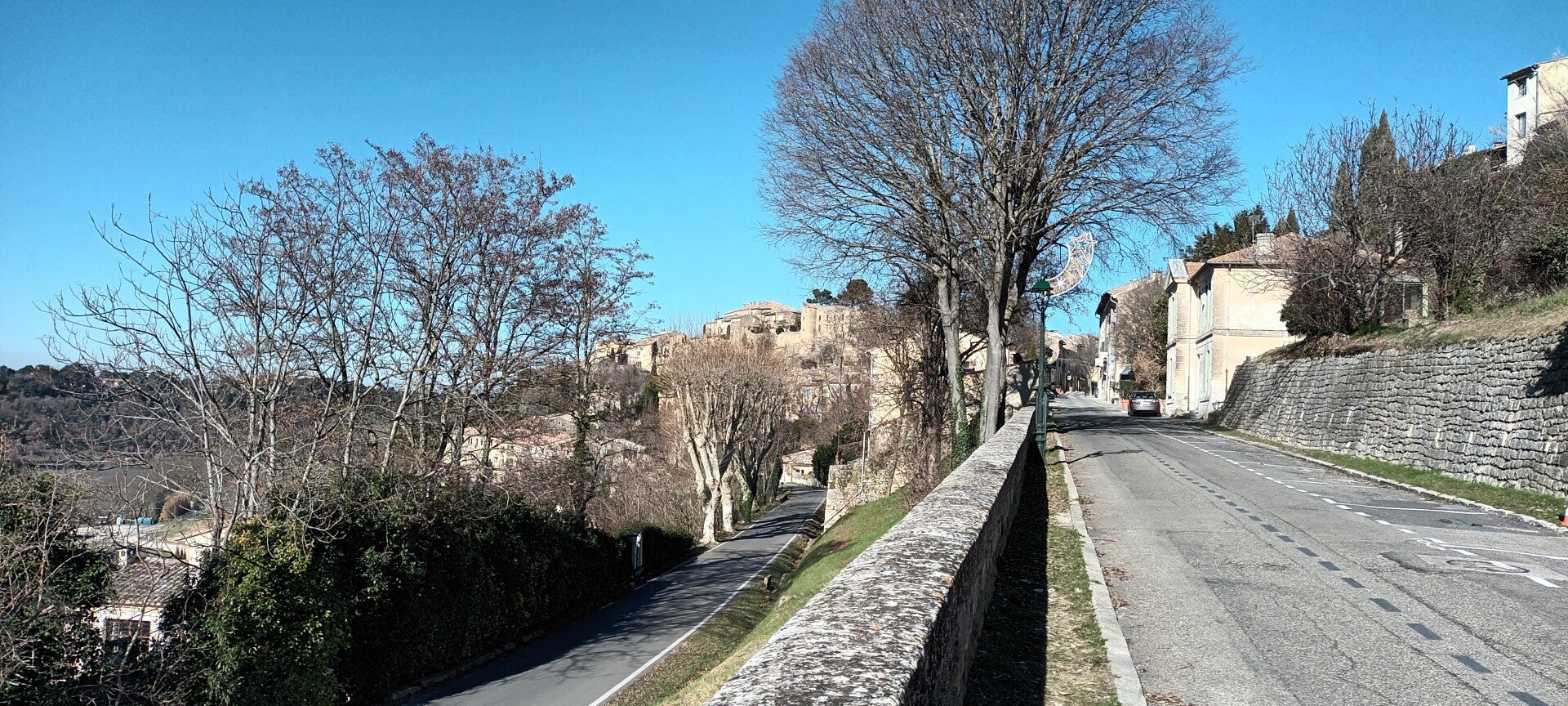 Départ du véloroute du Calavon , en face des Beaumettes.Au bord de la D900 et de la D29. Coordonnées gps du départ et de l'arrivée : 43.857607 , 5.202536